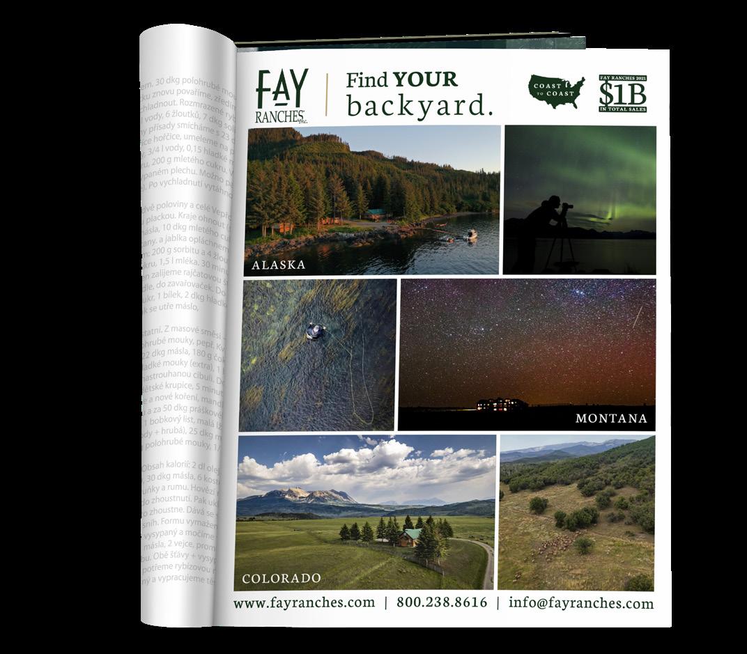 is utilized in a multitude of forms by Fay Ranches in our efforts to continually stay informed on the constant shifts in marketing methods, allowing us to reach the right buyers. Our strong partnerships with our advertising affiliates afford our listings significant exposure in terms of both quantity and quality. We strategically place our print advertising in publications that target an audience—in terms of wealth and interests—of potential land investors and ranch owners. Along with traditional print advertising, Fay utilizes highly effective letter campaigns, airport advertising, and our own Land Investor magazine to get our listings in front of qualified land investors.