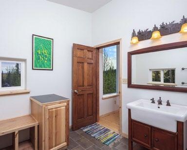 The lodge is a stunning 2,600± square-foot, twostory retreat that perfectly blends modern comfort with the rugged charm of its pristine Alaskan surroundings. Designed with intention and craftsmanship, this off-grid home features a solid concrete foundation, Hardie board siding, a durable steel roof, and premium materials throughout. Large Alpine windows—double and triple-paned— flood the living space with natural light and frame sweeping views of the Wrangell Mountains and Kennecott Glacier. Upstairs, the open-concept living and dining area boasts hickory cabinets, a tongue-and-groove spruce wood floor, birch trim, and two cozy lofts ideal for lounging or additional sleeping. The private upper-level bathroom and mudroom open onto a spacious 1,200± square-foot Trex deck that faces north, offering unbeatable vistas of the surrounding peaks and historic mining town. Downstairs, you’ll find a comfortable office/ bedroom, pantry, mechanical room, a two-car garage, and two private exterior-entry bathrooms— ideal for accommodating cabin guests. This beautifully built, code-compliant home is a rare find in rural Alaska, offering off-grid independence and premium amenities.