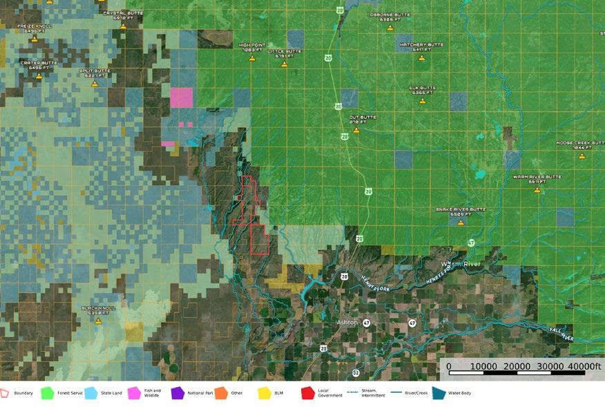 Five Creeks Ranch is a rare opportunity to own 2,126± contiguous acres across ten parcels in the heart of Idaho’s renowned Yellowstone Gateway Region. Located just 15± miles from the historic town of Ashton, this property offers a legacy of exceptional stewardship in a setting that provides seclusion while maintaining reasonable access to world-class recreation.