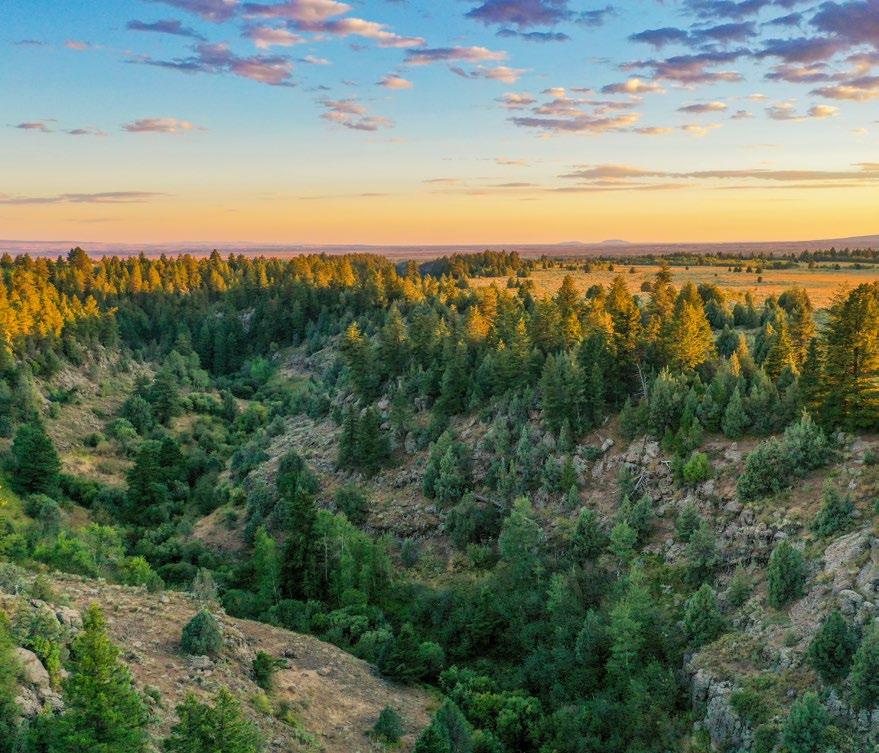 Flowing directly through the property, five named creeks: Dry Fork, Spring Creek, Snow Creek, DeWitt Creek, and Cold Spring Creek, create a diverse aquatic ecosystem supporting exceptional wildlife habitat. Multiple natural springs further enhance the property’s water wealth, creating lush riparian corridors that wind through deep timber draws and emerge into expansive sagebrush flats dotted with productive grasslands.