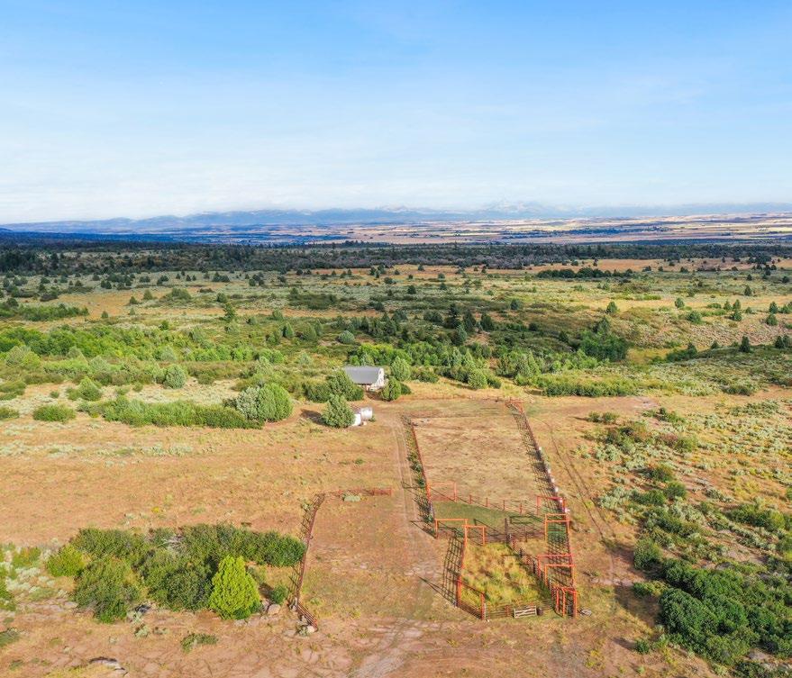 Professional-grade welded pipe corrals anchor the ranch infrastructure alongside a rustic cabin requiring finishing work. The property features comprehensive perimeter and sectional fencing with strategic water trough placement throughout. Two-track ranch roads provide access across the entire 2,126± acres. Quality fencing systems support effective livestock management across varied topography.