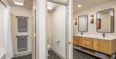 The walkout lower level is designed for multigenerational living. It features five spacious bedrooms with large windows, built-in closets, three separate entrances, and a patio. Two full bathrooms with double vanities ensure comfort and convenience. The lower level offers a large media room with comfortable seating, a wet bar, microwave, and sink, plus an additional family room with a charming stove for private, cozy gatherings. Other home features include fiber internet and a new Wi-Fi-controlled home security system. An oversized heated three-car garage provides plenty of room for storage. The home’s large deck and patio offer an ideal setting for relaxation, showcasing majestic views of the Hyalite Peaks to the south, Bangtail Range to the east and the Bridger Range to the west and north.