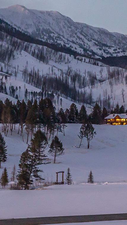 Over the hill in Paradise Valley along the Yellowstone River, the Depuy, Armstrong, and Nelson Spring Creeks attract avid anglers. These “pay to play” spring creeks are natural wonders emerging from the ground with a large volume of nutrientrich water providing an enormous amount of aquatic life, including an abundance of wild trout. Fishing conditions on these creeks are often excellent, even though it is winter.