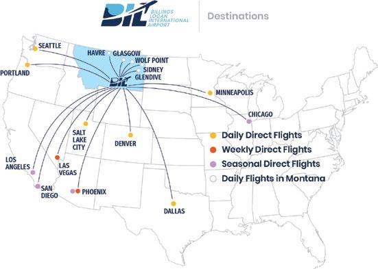 Minneapolis/St. Paul, Portland, Las Vegas, Los Angeles, Phoenix/Mesa, Salt Lake City, and Seattle. Air service is provided by Delta, United, Frontier, Alaska Air, Allegiant, and American Airlines. Billings also serves as a small hub for Cape Air, a commuter airline that operates nonstop flights to Sidney, Glasgow, Havre, Wolf Point, and Glendive.