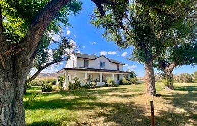 • Improvements include a 1900s ranch-style home with an upstairs apartment, historical barn, machine shed, open-face pole barn, and corrals