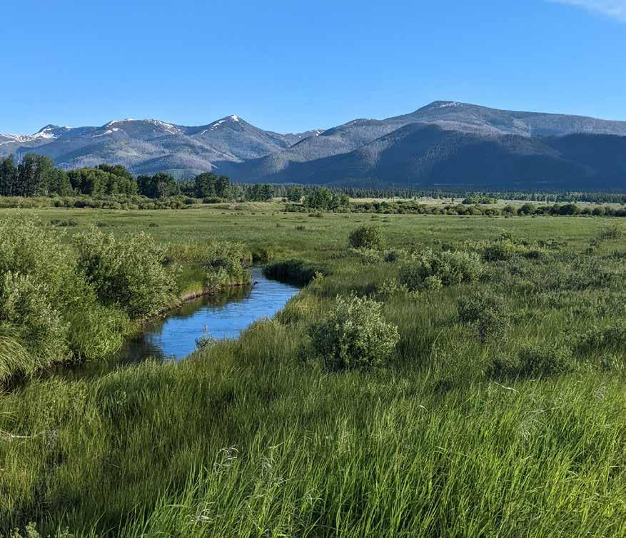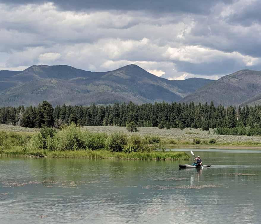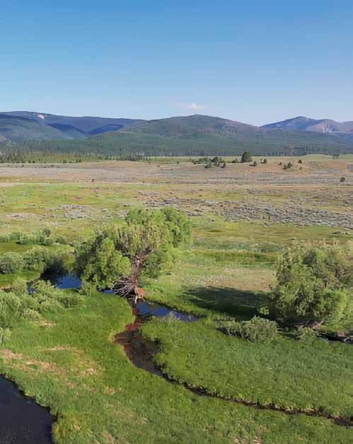 At elevations ranging from 4,500’ – 4,600’, Keep Cool Creek at Smith Lake features a balanced landscape of native grass, sagebrush, cottonwood, willows, aspen, and wetlands habitat on 427± acres. The property boasts an extensive network of pristine waterways, comprising approximately 3.5± miles of winding streams of Keep Cool Creek, Spring Creek, and Stonewall Creek. These creeks meander gracefully across the landscape, offering scenic beauty and vital habitats for various wildlife species. Around the custom home is a wellmaintained yard with native plants to await family, friends, barbecues, and games while blending with the natural scenery.