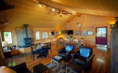 The lodge itself is a luxury retreat providing guests with all the comforts of home in a stunning wilderness setting. The accommodations include a main lodge featuring seven well-appointed guest rooms with four baths and a suite with two queen beds, a fireplace, and a private bath. Delicious meals using fresh, local ingredients can be enjoyed in the lodge’s spacious dining room.