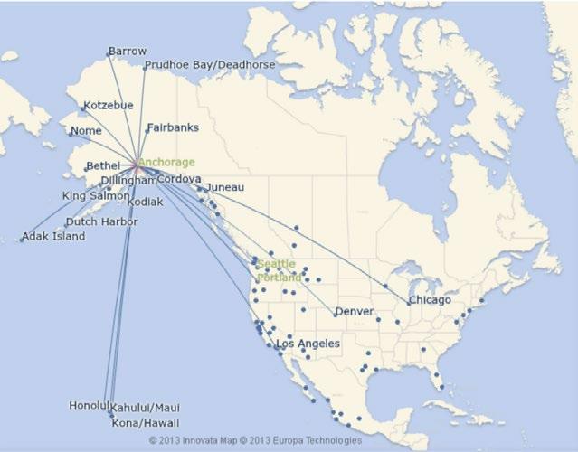 Airport services are from Ted Stevens Anchorage International Airport, where Alaska Airlines has daily flights originating from Seattle.