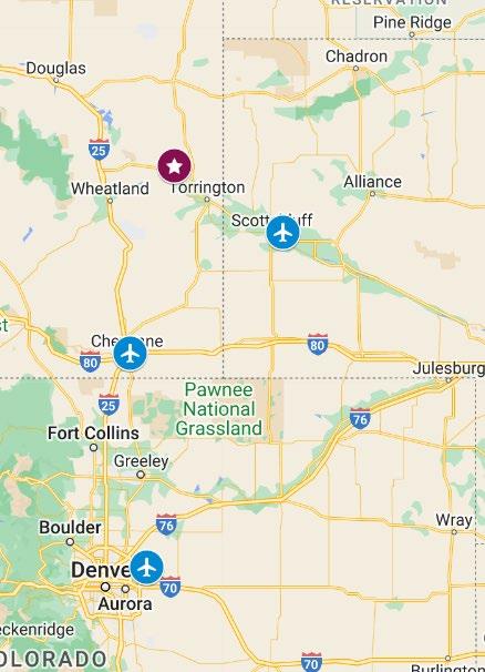 Several commercial airline services are available at Cheyenne, Wyoming; Scottsbluff, Nebraska; Casper, Wyoming; and Denver, Colorado.