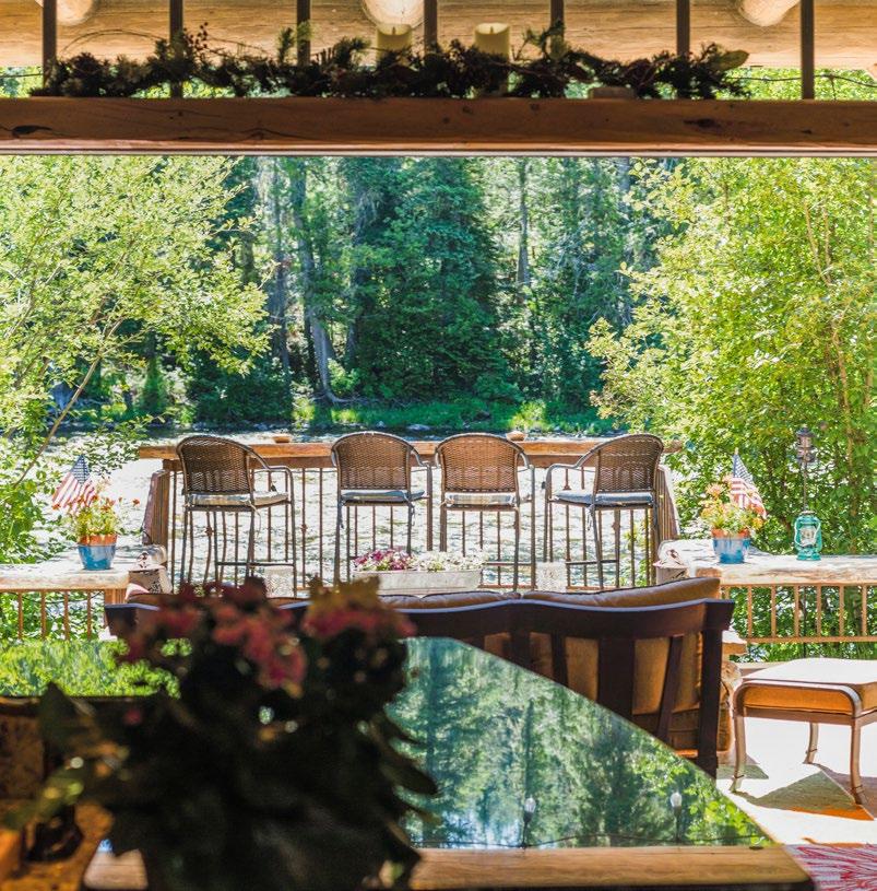 This property offers a host of impressive improvements ready to enhance your living experience. The 3,800 square-foot main cabin serves as the heart of this estate, providing spacious and comfortable living quarters. Inside, the elevated river view primary bedroom overlooks the Lochsa River! This home also features a custom bar, which will leave guests entertained. For convenience, a detached two-car garage and a detached single-stall outbuilding offer additional storage and utility space. The large fourbay shop provides ample room for projects and hobbies, with the first bay having two-level storage. Outdoor enthusiasts will appreciate the two fully furnished glamping sites, perfectly positioned along the river’s edge, inviting guests to immerse themselves in nature. The riverside hot tub offers a serene escape while enjoying the scenic views. Step outside to the stamped concrete-covered patio, where you can dine directly beside the river.