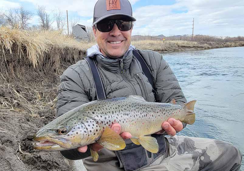 Large brown and rainbow trout swim in the river with the opportunity to hook 6–8 pound trophies. During fall months, mature brown trout clean the side channel gravel bottoms in an annual spawning ritual. Large rainbow trout follow suit in the spring.