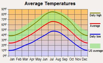 High-elevation mountain climate with cool summers, cold winters, and average annual precipitation of approximately 16–20 inches, supporting dependable snowpack and spring runoff.