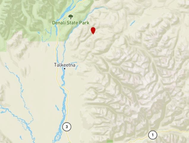 • About thirty-four miles north/northeast of Talkeetna, Alaska