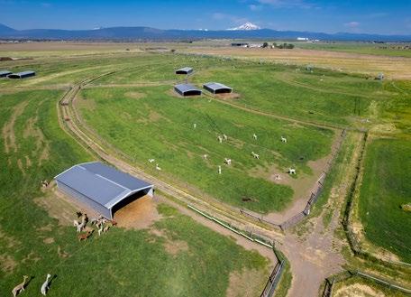 The farm is currently used to raise and market high-quality alpacas but was designed with the flexibility to accommodate a wide variety of livestock, including horses, sheep, goats, and cattle. Improvements include a 3,400± square foot metalframed home, a large multi-use barn with feed storage, indoor corrals, a dedicated vet room, and an apartment with an upstairs office offering expansive mountain views. A second barn features eight stalls with runs, while a smaller five-stall horse barn provides additional shelter. The property also includes 14 livestock shade shelters and over 30 automatic, heated waterers.