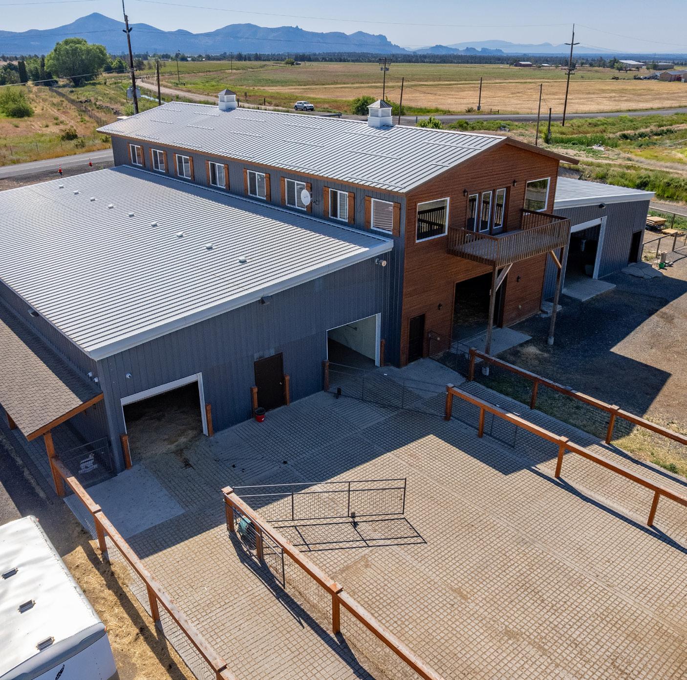 • Large livestock barn with tool room, vet room, apartment, laundry room, bonus/showroom, and office overlooking farm and mountains