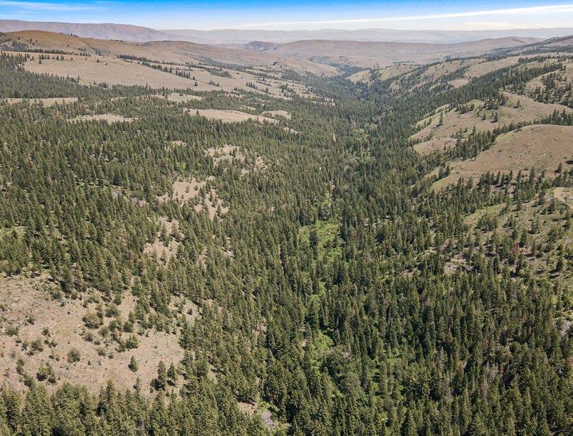 The property lies north of South Fork Cowiche Creek and south of the Tieton River. It is traversed by Rock Creek and several tributaries, beckoning avid fishermen to cast a line and try their luck at catching coho salmon, steelhead, and rainbow trout. The rolling hills are graced with mature timber covering approximately sixty-four percent of the land. The other thirty-six percent of the land boasts rangeland vistas creating breathtaking views for hiking, camping, and other off-road adventures.