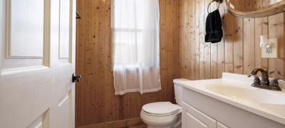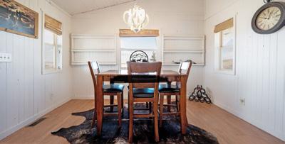 The charming farmhouse offers approximately 1,232 square feet of living space. The primary suite features a private en-suite bath, complemented by an additional office or guest bedroom and a convenient half bath.