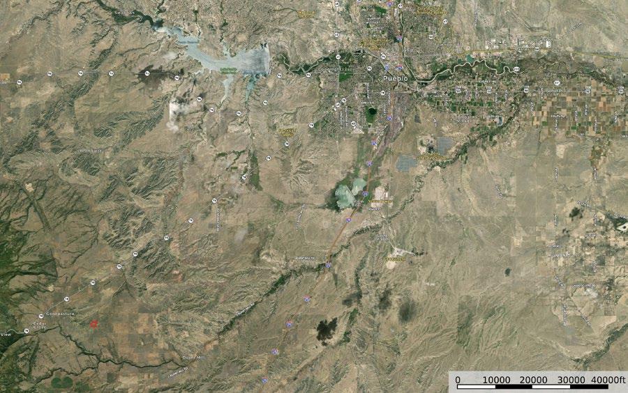 Conveniently located only 18 miles southwest of Pueblo, Colorado, just south of State Highway 78. The population of Pueblo is about 120,000± people, with shopping, restaurants, and big-box stores. The property is a 2.25-hour drive to Denver and about one hour from Colorado Springs. Painted Sky Ranch lies only a few miles from the mountain town of Beulah, with a gas station, a small grocery store, and a public school educating kindergarten up to fifth grade.