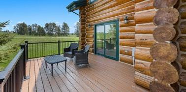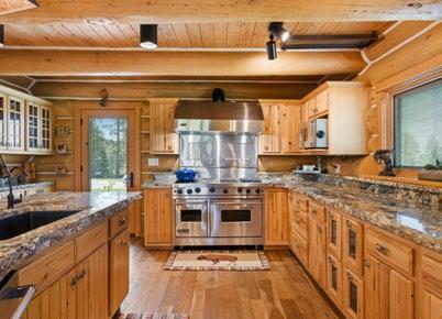 The spacious kitchen is a chef’s delight. You first notice the striking granite countertops and the amount of workspace, then realize the kitchen is equipped with a Viking gas double oven range, commercial refrigerator, pantry, and its own access door to the patio. The covered deck and patio provide the outdoor venue to enjoy the scenery after a long day on the ranch.