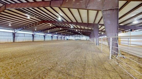 The working improvements are not to be overlooked by any means. At the center of the compound sits a 130’ by 275’ indoor arena that is ready for team roping, barrel racing, cutting, or whatever you and your horse desire. The arena has also been updated, with new insulation in the walls and ceiling, and new colored metal has been installed on the exterior, including the roof. The arena boasts 11 box stalls, each with water. The corral system inside is made of welded pipe with a roping chute, stripping chute, and return alley. The arena is heated with four propane unit heaters and fully lighted, making it useable any time of day or the year. Other amenities include a bathroom, wash rack, two tack rooms, and hay storage. A round pen is conveniently located just outside the arena for additional training purposes.