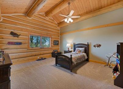 The main residence is a beautiful custom 6,500± square foot log home featuring two stories and a full walkout basement. The home has been significantly updated in the last two years, with new flooring throughout, new windows and exterior doors, new granite countertops in the kitchen and bath, and a new roof, and the exterior has been sandblasted and refinished in a warm natural stain. The home features five bedrooms, 4.5 baths, an office area, and a great room with 28foot vaulted ceilings. The home is heated by in-floor radiant heat supplied by a Crown Royal wood boiler with a propane boiler backup.