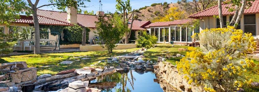 The large 9,000+ square foot hacienda-style home, originally completely off-grid, now features grid-tied solar and wind power, a courtyard, and water supplied from an artesian water well. A caretaker’s home, barn, and workshop are all conveniently situated near the hacienda.