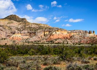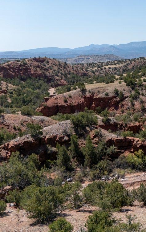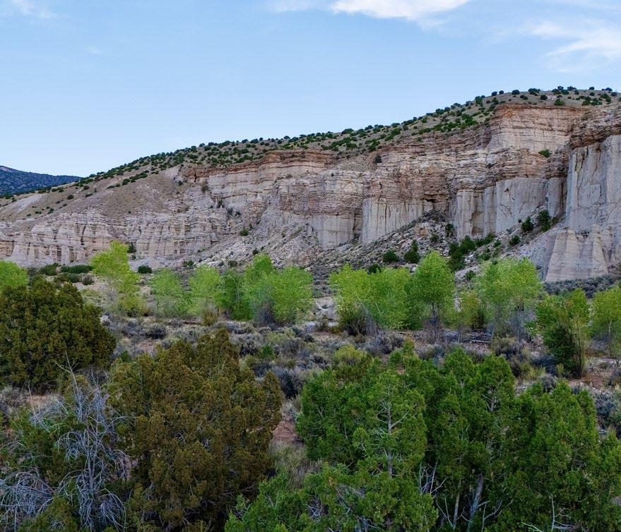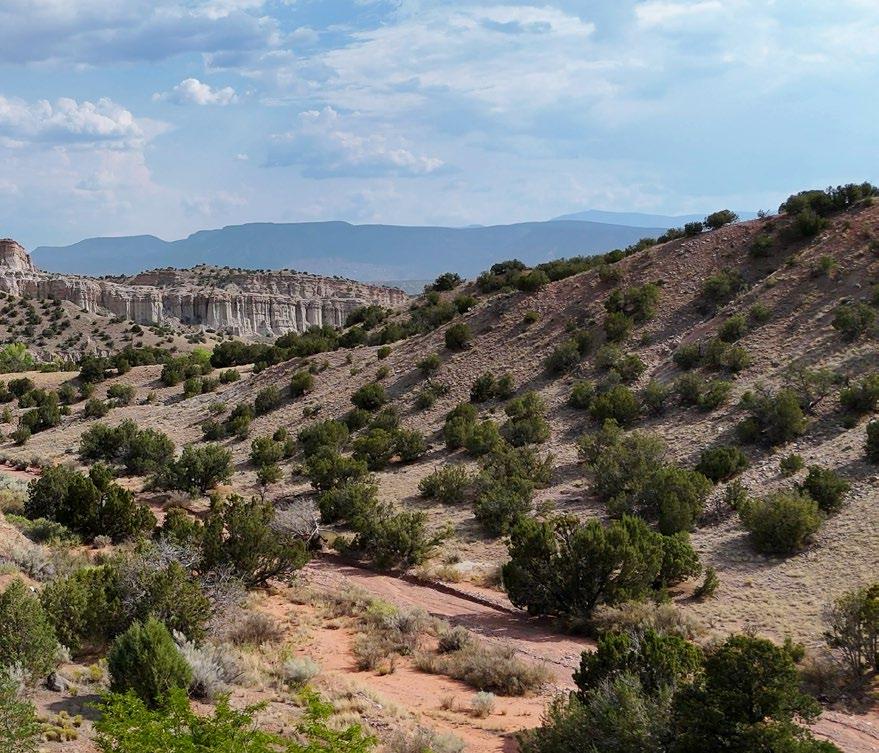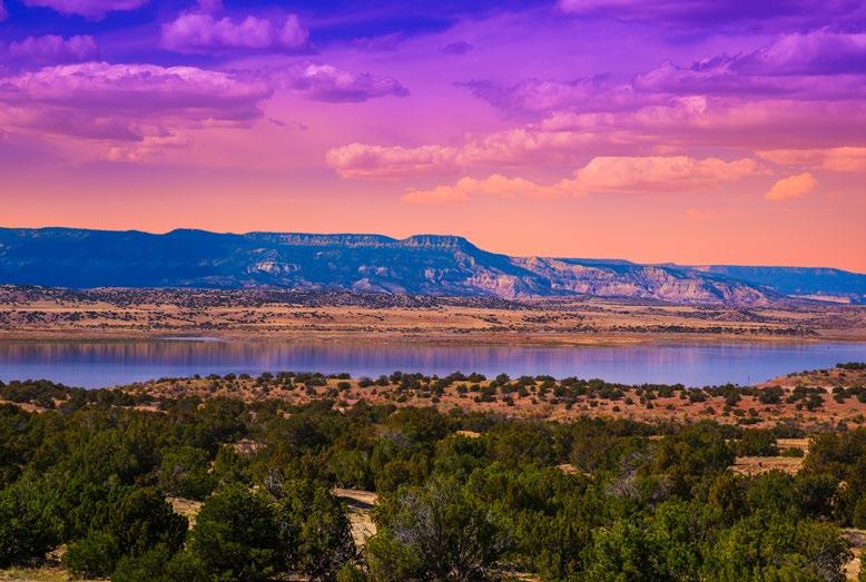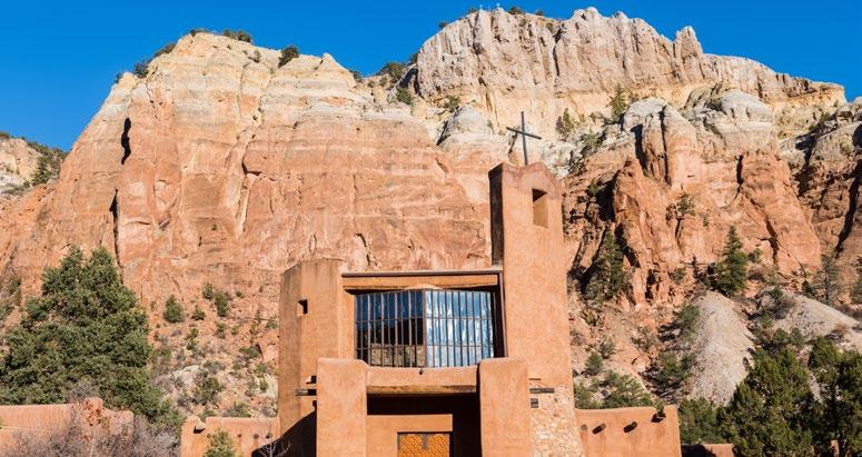 Abiquiu, New Mexico, rests along the Rio Chama, where red sandstone cliffs meet high desert mesas and cottonwoodlined river valleys. The village carries layers of history—first home to ancient Pueblo peoples, later a Spanish frontier outpost, and today a place where culture and landscape are inseparable. The surrounding terrain has long drawn artists, most famously Georgia O’Keeffe, who captured its stark beauty in paint. Just beyond town lie the storied canyons of Ghost Ranch and the remote Monastery of Christ in the Desert, reminders that Abiquiu is as much a spiritual refuge as it is a physical landmark.