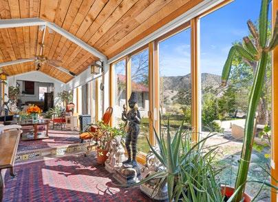 The seven-bedroom, six-bath main house is built in the style of a Spanish hacienda and was originally designed to function completely off-grid with solar and wind power. In recent years, grid power was brought in, and solar power is now tied to the grid. The main living area is on one floor, and the three-bedroom basement apartment is reminiscent of the Native American Kiva style. The apartment has several unique features. A two-bedroom caretaker’s house, barn, and workshop are conveniently located near the main house.