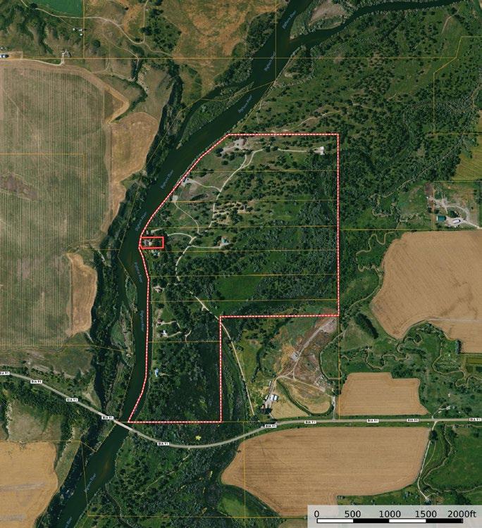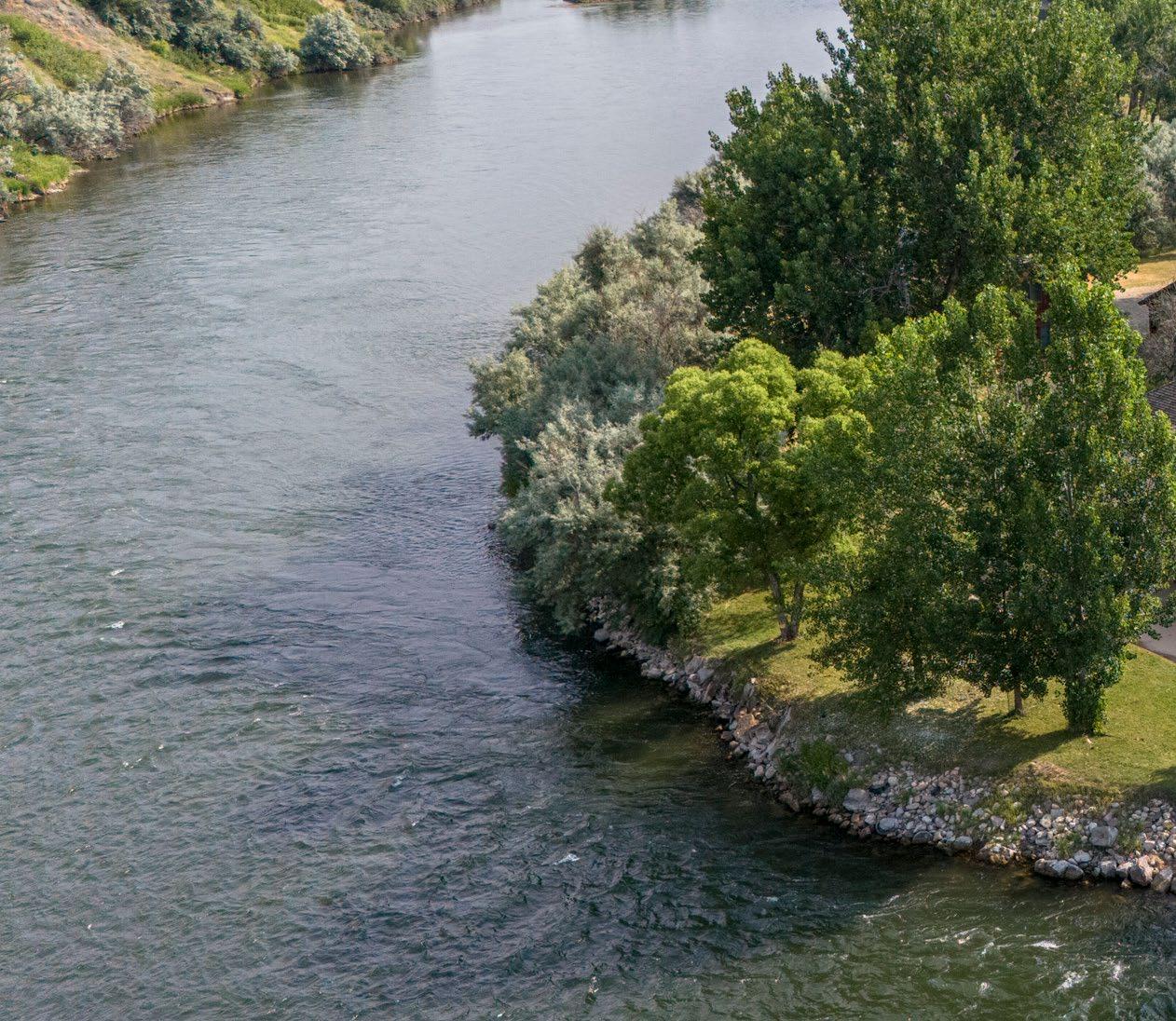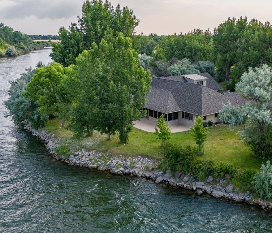 The 1± acre lot lays along the riverbank on a prominent point across from the “island hole,” with huge cottonwoods and Russian olive trees lining either side of the driveway entering the property.