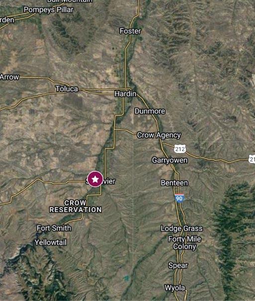 From Billings, Montana, travel east 47 miles on I-90 to Hardin. Head south onto US Highway 313 for 23 miles to St. Xavier. Continue straight onto BIA 91, approximately 1.5 miles before the bridge, and turn right onto Riverbend Road. Continue down the lane and turn left at the fourth driveway on the left.
