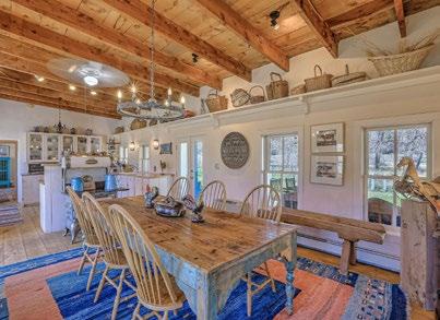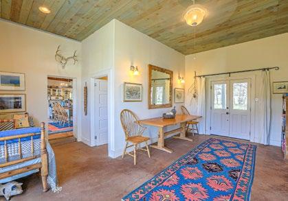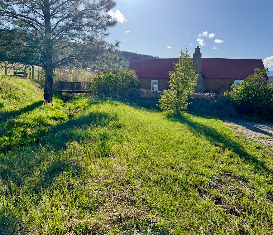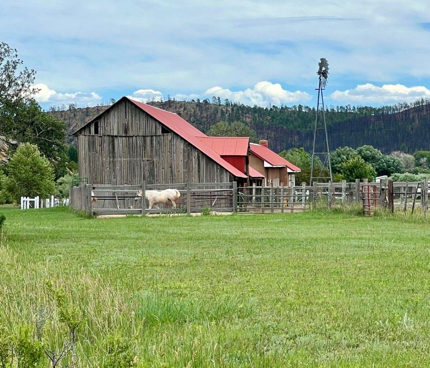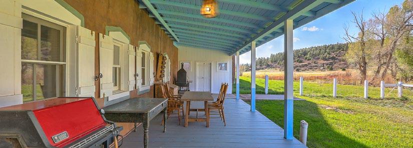 The heart of the property features a Northern New Mexico-style adobe and double-frame main house. It sits next to a large historic barn and backs to the Sapello River. An expansive portal runs along the entire north side of the house and offers 180-degree views of the cottonwood grove, river area, and meadows leading up to the forest and mountains. It is the perfect spot to relax and watch the wildlife.