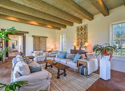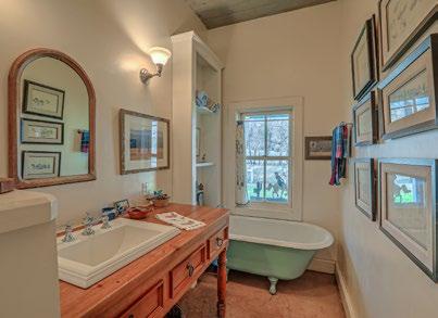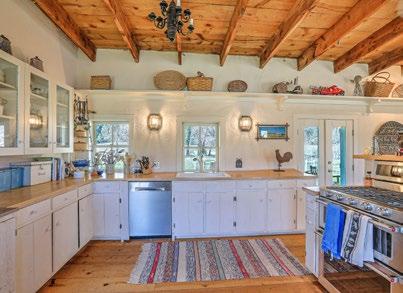 The roughly 2,000-square-foot main house has a spacious, light-filled living room with a woodburning fireplace and stained concrete floors with radiant heat. There is also a generous country kitchen with wide plank pine floors, custom cabinetry, and high-end appliances. Although the original adobe structure is 75 years old, all plumbing, electrical, and mechanical systems were installed in the 1995 remodel and the 2002 addition and updated as needed. There is a small office as part of the bedroom suite and a second bath in the addition, with room for guests in that area. A cozy 1-bedroom, 1.5-bath caretaker’s house and separate studio near the property entrance offer privacy, comfort, and convenience for guests or management. There is a laundry room in the caretaker’s house, but not in the main house.