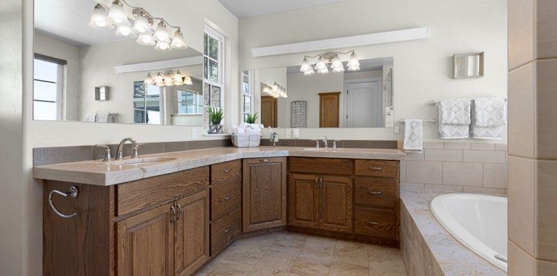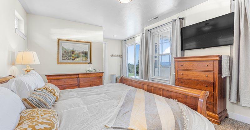 The primary suite is a dream come true! You will surely be impressed with this large suite featuring a walk-in closet, soaking tub, walk-in shower, large vanity with dual sinks, and a slider to the hot tub and outdoor living space, all on heated concrete. The oversized 4-car garage is a car enthusiast’s dream. It includes air conditioning, a large industrial heater, plumbing for an air compressor, a full bathroom, and plenty of room for all your hobbies, classic cars, or storage needs.