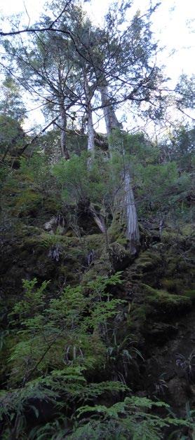 • Over the fault line carrying the creek, to the west, there is a slope leading to a large central plateau at approximately 400 feet that has a view to both to the east and south along its rim.