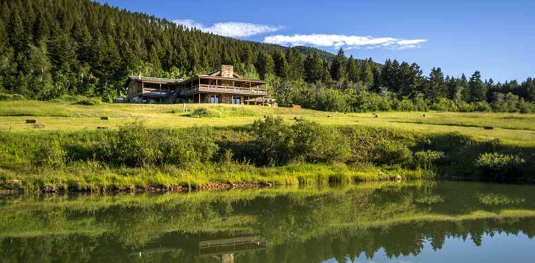 Accessible by a private, end-of-the-road driveway, the 122± deeded acres in two parcels sits at about 5,240 feet to 5,520 feet in elevation. The property is bordered on three sides by State Land for over a mile of the boundary. This state land leads to millions of acres of additional public land connecting to Yellowstone National Park to the south, making this ranch feel endless. Enjoy majestic forests, lush meadows, and distant mountain ranges from every direction. Ride your horses directly from the property into the contiguous public land on miles of trails that wind through a mix of mature pines, willows, and aspens. Mountain springs feed a year-round creek, supporting three ponds with crystal clear, troutready waters. Another pond attracts wildlife near the main lodge. The property also generates between 3,000 and 4,000 small hay bales annually.