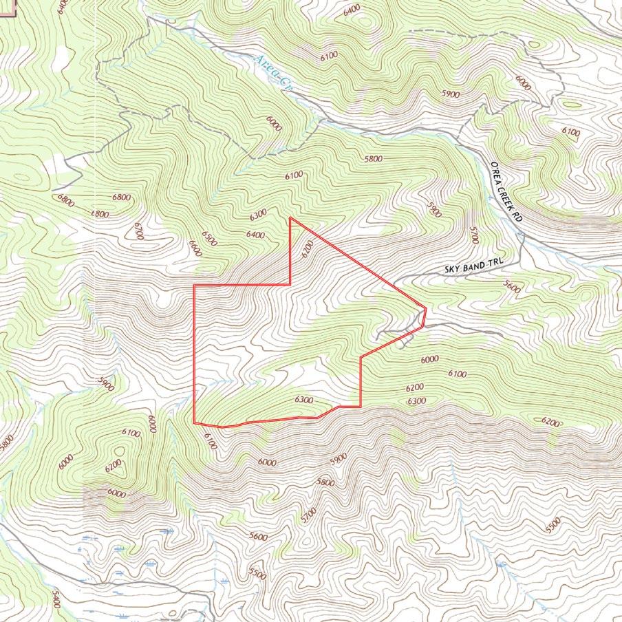 Sky Band Retreat’s elevation ranges from 5,760± feet to 6,500± feet throughout its 247± acres, with rolling hills and a timbered wildlife habitat that provides privacy around the improvements. Fencing surrounds the improvements and runs along the private drive and a section of the boundary. The large acreage lends plenty of room for some limited dryland farming, which the current owner has done in the past. The property is mixed terrain, including pine trees, native grass, rock outcroppings, and hills on either side, offering a blend of visual diversity, natural privacy, wildlife habitat, recreation opportunities, and seasonal beauty. A small watering hole sits just down from the house, as well several other springs on the property.