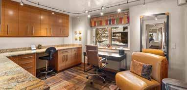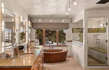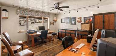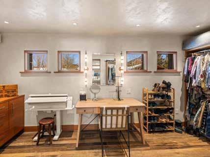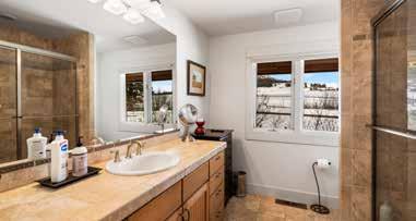 Off the second living area, you will find a hall leading to a half bathroom, a second bedroom with an en-suite bathroom, a third bedroom, an office, a laundry room, and an exercise room. The en-suite bathroom attached to the second bedroom includes a double vanity and a large walk-in shower with Bridger Range views. The office and the laundry room include beautiful built-in wood cabinets and stone countertops.