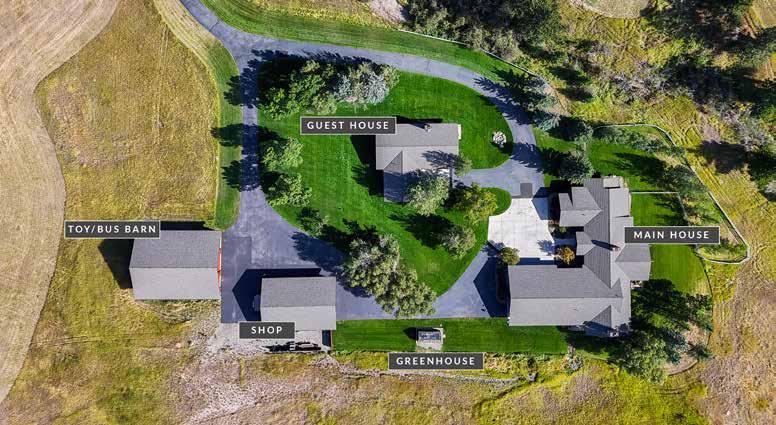 Around the circular driveway from the main and guest homes, you will find a greenhouse, a 50’ x 34’ shop, and a 50’ x 48’ RV/toy barn. The shop includes an oversized garage door and lots of space for tinkering.