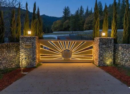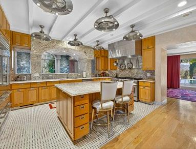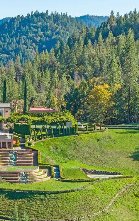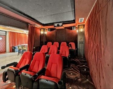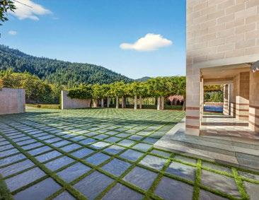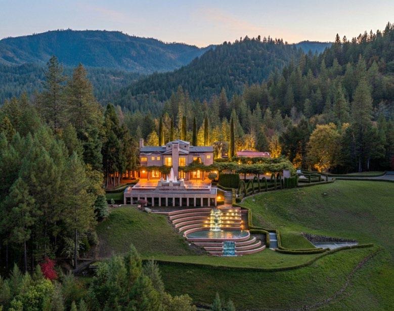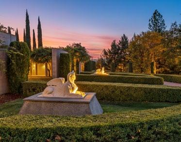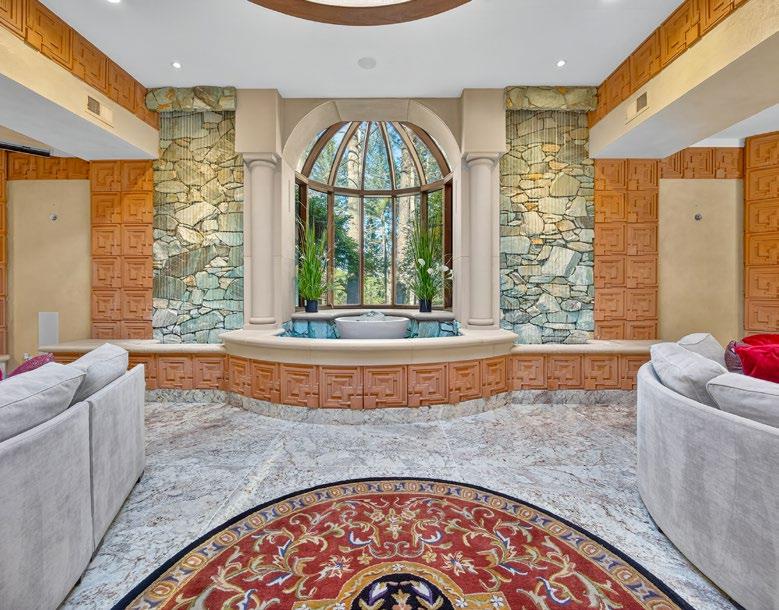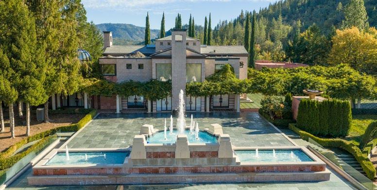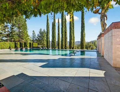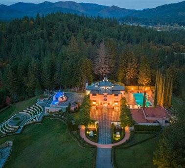 The grounds are equally compelling. A multi-tiered amphitheater with cascading water features creates a dramatic setting for events, while terraced entertaining areas offer both scale and privacy. A wisteriadraped pergola leads to an Olympic-sized pool, complete with a hidden speakeasy bar and private theater, blending elegance with unexpected character.