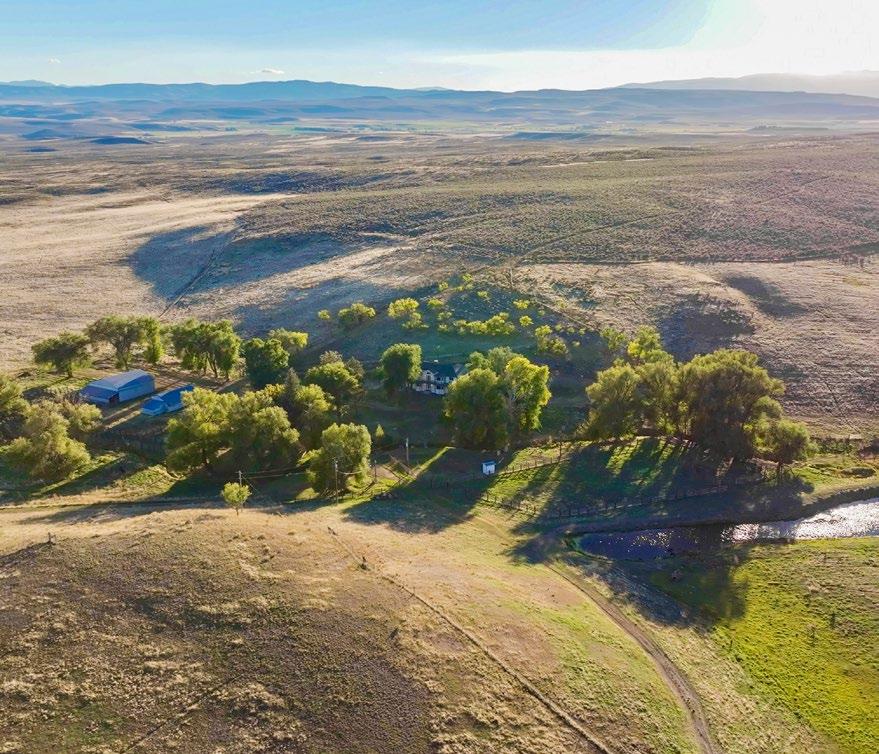The topography consists of rolling sagebrush with irrigated pastures and lush drainages running north to south, ideal for wildlife and cattle, with endless miles of horseback riding. Water is the essential ingredient in creating a lush oasis forming much of the ranch. The BLM and the National Forest border the north portion of the ranch.