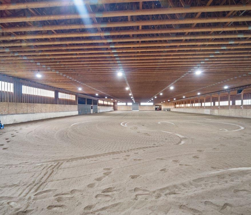 At the heart of the property is a massive 29,000± square-foot indoor arena equipped with brand-new LED lighting, making it an ideal venue for events and training year-round. Complementing the arena is a 10,000± square foot feeder barn with 30 indoor stalls and over 16 outdoor paddocks, each with power, water, and shelter. A 160’ x 270’ outdoor arena expands your event and riding possibilities, and a 10,000± square-foot hay barn (new construction) ensures ample storage.