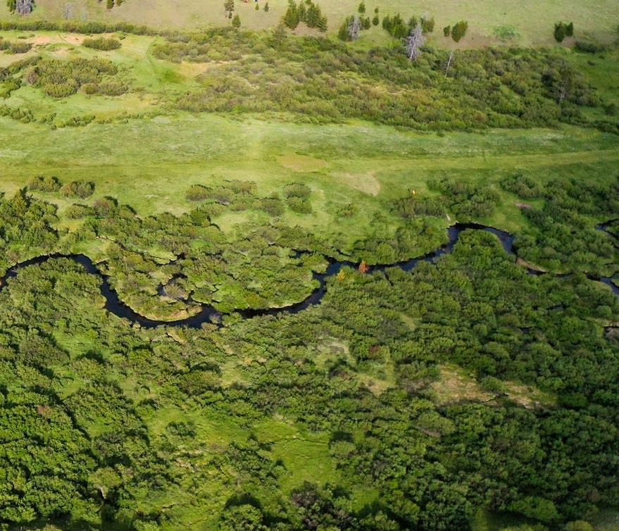 The Upper Willow Creek Retreat’s acreage features a delightful blend of agricultural and recreational attributes. Located on the valley floor of the Upper Willow Creek drainage, the acreage is primarily composed of sub-irrigated grasslands laced with pockets of pine and aspen. Upper Willow Creek braids through the land, surrounded by a dense riparian willow complex.