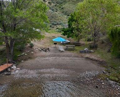 Tucked behind a gated entrance, the property features four well-appointed cabins on two separate sites, “Whiskey Ridge” and “Rilette Springs,” with a combined four bedrooms, four bathrooms, two kitchens, and fully independent utilities, including two wells, two septic systems, and dual power hookups—perfect for family retreats, outfitting, or shared ownership. Each cabin area is equipped with inground sprinklers for low maintenance and a beautiful green lawn. The Rilette Springs cabin has a Mammotion robotic lawnmower to ensure the lawn gets mowed even when you are not on site.