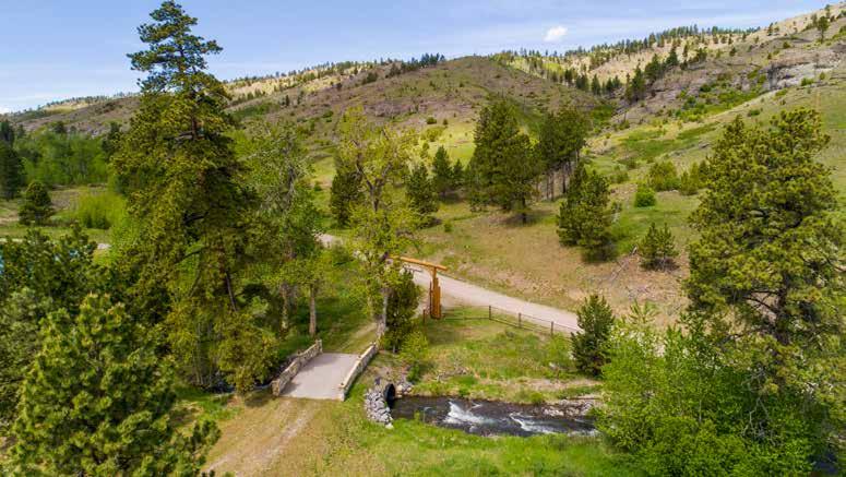 Catch glimpses of rocky ridge views, mountain meadows, healthy verdant creek bottom, and dramatic canyons as you drive to Whispering Creek Ranch. The property boasts 39± deeded acres set below the Absaroka and Crazy Mountain Ranges, with small trout fishing during certain times of the year along 750± private feet of the small West Bridger Creek. Centrally located in Montana, Whispering Creek Ranch is 35± minutes south of Big Timber, Montana, and its private airport and within an hour and a half of Bozeman and its commercial airport. Exceptional creek frontage, a private pond, and natural beauty complemented by wellappointed improvements make Whispering Creek Ranch a quiet respite.
