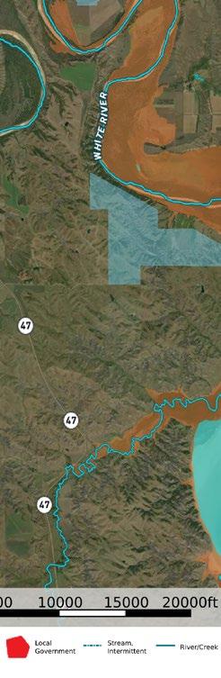 But the value of this land goes beyond what’s seen at first glance. With its combination of fertile bottom ground, wellsituated crop acres, and strong native grasses, the property presents a balance of income-producing potential and wild, unspoiled habitat. The White River winds like a thread through the heart of the land—its meandering course shaping rich wildlife corridors, secluded pockets, and hidden draws ideal for hunting blinds, or quiet moments of solitude. This land is the canvas ready for your thoughtful vision, with optimal build sites throughout.