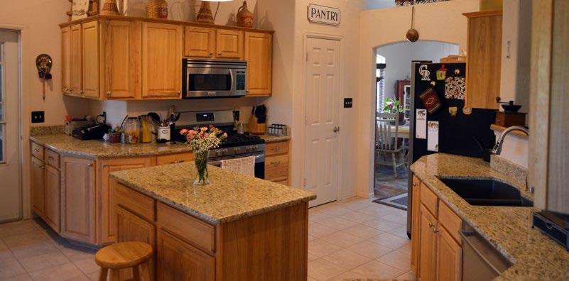 The home offers single-level living at its finest, including vaulted ceilings, granite countertops in the kitchen and bathrooms, hickory soft-close kitchen cabinets, numerous storage closets, central air, and stainless steel appliances. The Bosch dishwasher is brand new. The insulated two-car attached garage is large enough to fit a full-sized pickup.
