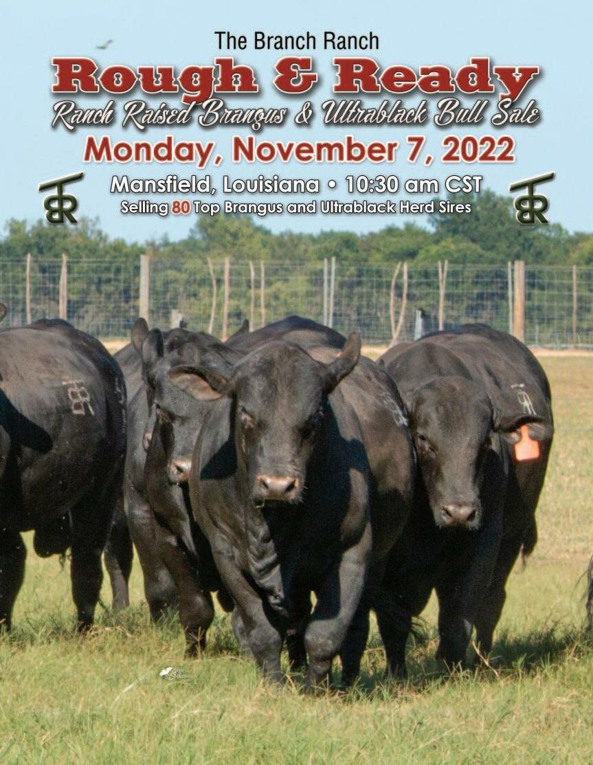 10:30 am . .The Branch Ranch “Rough & Ready” Sale . . . . . . . .Bulls will Sell in Lot Order Lunch provided by Valley Farmers Co-op will be served immediately following the conclusion of the sale.