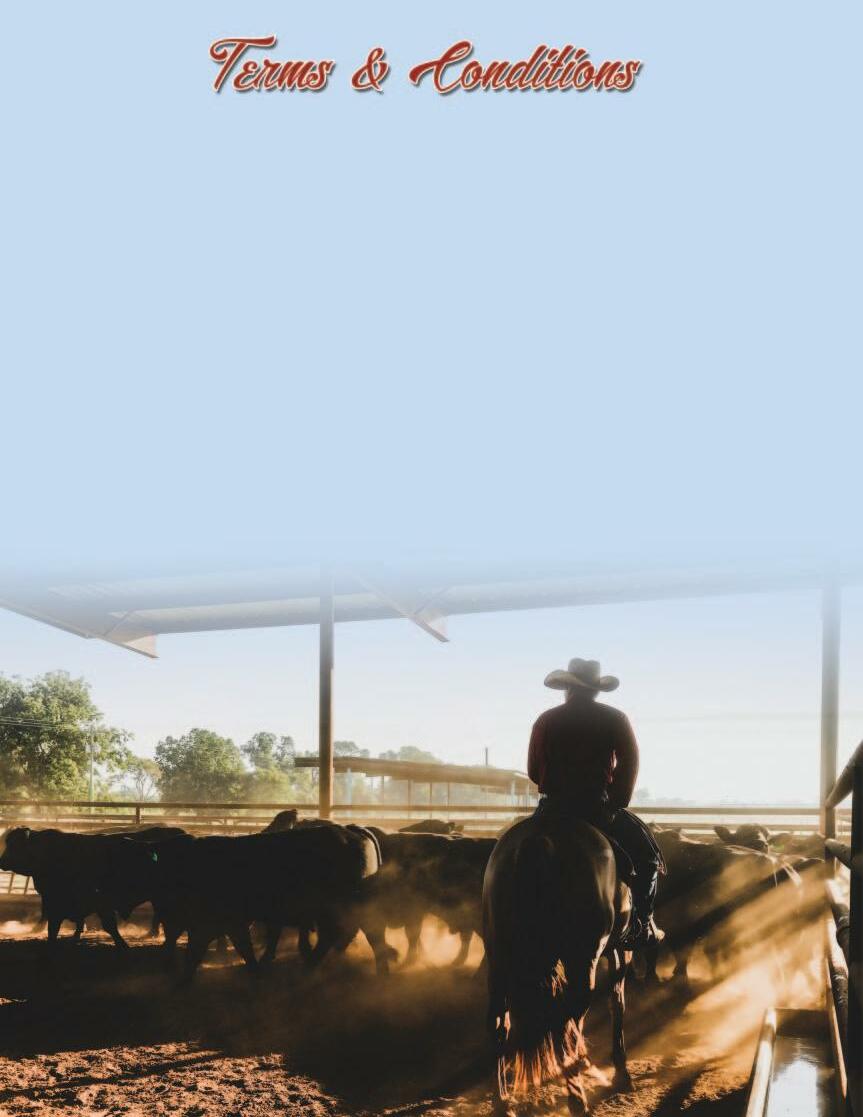 8. RIGHTS AND OBLIGATIONS: The above terms and conditions of sale shall constitute a contract between the buyer and seller of each animal and shall be equally binding upon both. Additional Terms & Conditions applicable to the Online Auction can be found