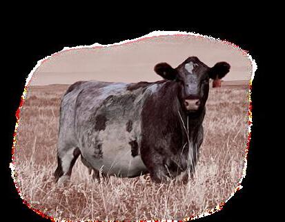 The bulls on the following pages began as a conversation, now, over 11 years ago, with a lifelong Simmental breeder from just outside Lisbon, ND by the name of Jerry Hieggelke. I had appreciated his cattle, and, as it often goes around the Sandhills in SE ND, many cattlemen's herds are heavy with Simmental x Angus influence. I'd heard several of our mutual customers speak well of his bulls. They talked of how they held up without excessive supplement, bred cows, and, most importantly, lasted. They all said "lasted" and my wheels were turning. I had passed that on to him one day and said I'd love to come have a look at his Red Cows sometime. Wheels still turning, I talked to Marty Ropp and told him to be on the lookout for a good Simmi x RA donor. That fall, he called and told me he'd found one, TNT Miss W7 came to Kathryn and we flushed her Shorthorn. The Miss Me's you see today all trace back to her. Back to Jerry—a year went by and then one day, after having gone through some health troubles, he stopped and asked if I'd like to come have a look at the cows. I didn't hesitate. I'm glad I went as we made a deal that day for all of his red cows. The next step, mate them to our Durham Red Bull, SBR Goldenrod 714. Goldenrod 714 was an incredible beast. Sired by the Select Sires bull JSF Goldenrod 57U (another son of the immortal KL Gold Rose 451) and, out of an awesome Buffalo Creek Cherokee Canyon daughter, back to Rick Osterday's Suzy Cow family, which, at the time, may have been the best cow walking in Java. I had the best of ranch country, Shorthorn and Red Angus, ready to wrap back on a set of Simmi's.