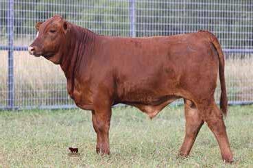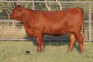 1/2 Santa Gertrudis 1/2 Herford sired by H FN REST ASSURED 1410 ET, a Hereford calving ease bull.